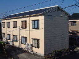 アパートは東南東向きですので,日当たりもよいです. 壁面はクリーム色です.