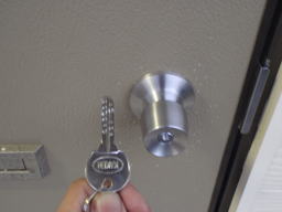 ピッキングに強いと言われているディンプルキィータイプのものです.近頃は多くのアパートで採用されていますが,ハイツ島田ではご入居様のセキュリティーのため,早くから導入しています.